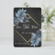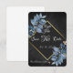 Fondo negro rodeado de hermoso follaje azul. Marco dorado. Personalízalo como te gustaría que se viera tu invitación de guardar la fecha.