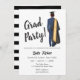 Ilustraciones de graduación de acuarelas con jóvenes con vestido y gorra de graduación. Un diseño elegante y elegante con plantillas totalmente editables que le permiten personalizar con facilidad el nombre, la fecha, la hora y la ubicación.