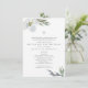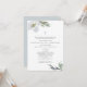 Elegante bautismo o bautizo de acuarela religiosa botánica y invitación de primer cumpleaños encuadra tus detalles con un borde de hojas de acuarela grises modernas y flores en tonalidades frescas de grises y verdes sobre un fondo blanco crujiente. Los detalles del evento se establecen en una elegante fuente tradicional sans serif y script. Esta invitación neutral de género incluye una escritura que puedes editar para incluir versos religiosos bibliales que se adapten a tus necesidades. Una encantadora elección para eventos de primavera, verano, otoño, rústico o de jardín. Para ver más diseños religiosos de cruces y flores como esta visita VG Invita a www.zazzle.com/vginvites