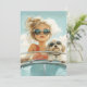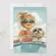 Una elegante chica joven y su florido perro disfrutan de un viaje por carretera soleado, ambos con gafas de sol, confianza y alegría exuberantes.