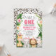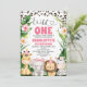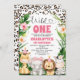 Wreath Cheetah Print Safari Wild One 1st Birthday Invitation Cute safari con temática salvaje una invitación de primer cumpleaños con un follaje y una flor floral, rosa de purpurina de oro con estampado de chita y cuatro bonitos animales de safari. Esta invitación salvaje de safari de un primer cumpleaños es ideal para cualquiera que le guste los patrones de impresión de chita.