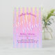 "Feliz Dulce Dieciséis". Envíe esta impresionante, brillante, divertida, festiva, moderna, personalizada invitación para una fiesta que recordar. Tipografía de escritura blanca y rosa caliente, junto con confetti color turquesa y rosa, superponen un fondo rayado rosa claro y arcoiris oscuro purpurina. Personalice el texto del personalizado con el nombre de su hija, así como otros detalles del fiesta. Ideal para la flamante moda que ama el purpurina moderno y el glam y garantiza que le hará divertirse con estilo a su fiesta especial. En esta moderna y especial colección también se ofrecen platos, servilletas y otros productos de cumpleaños. Simplemente escriba el nombre del chica de cumpleaños, el año de cumpleaños y la información del lugar de fiesta y puede personalizar fácilmente esta invitación de cumpleaños. Por favor, envíame cualquier pregunta o petición.