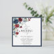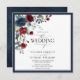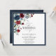 Invitación Guión acuático floral azul de borgoña de la marina