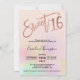 Moderna, moda y elegante arcoiris perla holográfica oscura dulce de 16 años, invitación a la fiesta de Relieve metalizado con una tipografía moderna de 16 años con un gradiente color arcoiris pastel sobre un fondo rosa pastel editable. Añade tu foto al fondo o deja un fondo rosado. Perfecto para el tema de la princesa Sweet 16!