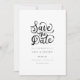 Este sencillo, elegante, guión, blanco y negro guardar la tarjeta de anuncio de fecha presenta un hermoso mensaje a mano guardar el mensaje de fecha. Agregue los detalles de su invitación especial en un texto clásico.