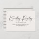 Tarjeta R.S.V.P de boda de escritura contemporánea simple y negra. Impresionante diseño moderno abstracto y abstracto. Parte de una suite.