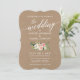 Invitación Guión caligráfico Boda floral blanco rosa Kraft