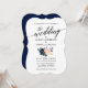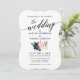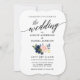 Guión elegante moderno de caligrafía, acuarela azul y rosa invitación a la boda floral