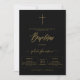 Anuncie el día especial de su hijo con esta Invitación a un Bautismo Neutral con Sexo Negro y Oro con Guión Asombroso. Con tipografía minimalista y caligrafía escrita a mano, perfecto para un bautizo católico moderno para niños y chicas.