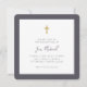 La invitación al bautismo simple y clásico incluye una cruz simple de color dorado y un guión moderno con letras a mano con un borde azul redondeado a medianoche. La parte trasera de esta elegante invitación al bautismo incluye un código QR con información Rsvp para los huéspedes. Esta bonita invitación también es perfecta para un bautismo adulto. Esta tradicional invitación religiosa es perfecta para un sacramento católico del bautismo, el bautismo cristiano o la cristiandad.