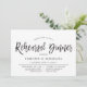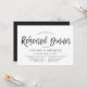 Una invitación única a la cena de ensayo con elegantes letras estilo script, seguida de los detalles únicos del día de la boda en blanco y negro. El lado inverso contiene un sólido carbón negro que complementa el tema desde el frente de la tarjeta de invitación.