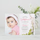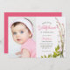¡Celebra el hito especial de tu pequeño con esta adorable invitación de cumpleaños de Boho Wildflowers! Esta encantadora invitación incluye una encantadora foto de un collage floral en el lado derecho, que complementa perfectamente una dulce foto de su bebé a la izquierda. La delicada foto de una flor silvestre en tonos suaves rosa y verde le da un toque de naturaleza y capricho, lo que lo convierte en una elección ideal para una fiesta de cumpleaños con temática de jardín o floral. El elegante tipo de letra del guión resalta el nombre y los detalles de cumpleaños de su bebé, creando un hermoso y cohesivo aspecto. Invitar a sus seres queridos a unirse a la alegría y celebrar esta preciosa ocasión con esta encantadora y memorable invitación.