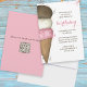 Diviértase con esta encantadora invitación para una fiesta de cumpleaños que incluye un ilustracion de helado con una suave acuarela rosa. Diseñado con un guión elegante de caligrafía y una tipografía lúdica, este diseño original y elegante de moda da el tono perfecto para una dulce celebración. Un código QR escaneado hace que los RSVP sean rápidos y fáciles, combinando diversión y función en una invitación adorable. ¡Ideal para los fiestas de niños o para todo aquel que ame helado y papel de bonito!