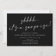 Esta moderna y sorprendente invitación fiesta presenta un fondo negro de moda con escritura blanca y tipografía moderna para el texto. El guión del frente dice "shhhh... ¡Es una sorpresa!" Todos los colores (incluyendo el fondo y el guión) son personalizable completo y fácil. Incluso puedes añadir una foto al fondo... Simplemente utilice "herramienta de diseño" en el menú desplegable de personalización.