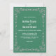 Esta elegante y sencilla invitación a la boda es perfecta para un boda moderno. El diseño es sencillo y cuenta con un bonito marco floral con una elegante tipografía negra sobre un fondo verde.