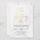 Elegante y moderna invitación a las bodas, con un falso Relieve metalizado dorado, letra de guión de moda, fondo de mármol blanco y marcadores de posición para tu invitación a las bodas. La parte posterior de la invitación puede cambiarse a un color de su elección con la herramienta Personalizar.