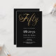 Una invitación moderna y elegante para una fiesta de cumpleaños número 50 tanto para él como para ella. Antecedentes negros y la palabra Cincuenta escribió con grandes letras falsas de oro. Personalice y agregue un nombre y detalles del fiesta.