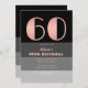 Invitación Guión de oro Rosa Black Gray Stripes 60 cumpleaños