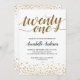 Guión de los puntos modernos del Confetti dorado Invitación a los 21 cumpleaños El diseño presenta 'veintiuno' en un guión moderno y elegante y acento de confeti dorado. Si quieres personalizar el texto 'veintiuno' a otra edad, no dudes en enviarnos un correo electrónico a panggadesigns@gmail.com.