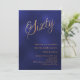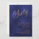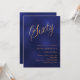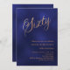 Una invitación moderna y de diseño para una fiesta de cumpleaños número 60. Un fondo azul marino, de color desigual y la palabra Sixty escrita con elegantes letras de guión grandes en falso oro. Personalice y agregue un nombre y detalles del fiesta.