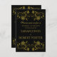 Invitación Guión dorado en negro con Boda de diseño filigrí