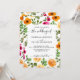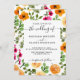 Invitación a la boda floral color agua rosa y naranja con escritura elegante.