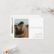 Elegante invitación Minimalista a la simple boda fotográfica. Este refinado diseño presenta una sola foto a la izquierda, bellamente equilibrada con una tipografía moderna y mínima a la derecha. El diseño limpio incluye espacio para un mensaje personal, la fecha de su boda y la ubicación, mientras que los nombres de la pareja están elegantemente firmados en un estilo de escritura manuscrita, añadiendo un toque personal y romántico. En la parte trasera hay espacio para otra foto y mensajes o detalles adicionales para los huéspedes.