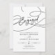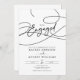 Invite a sus seres queridos a su fiesta de compromiso con esta minimalista y moderna invitación en blanco y negro que incluye una sofisticada caligrafía de guión "Estamos comprometidos". Esta invitación es perfecta si deseas simplicidad mezclada con elegancia.