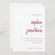 Estas elegantes y minimalistas invitaciones a la boda presentan una tipografía de escritura burdeos, moderna y limpia, sans serif texto sobre blanco para un diseño simple y elegante que le encantará.