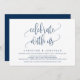 Hermoso guión azul marino de elegancia moderna y hermosa, anuncio de fuga de novios, tarjeta de invitación (Celebra con nosotros). Esto es perfecto para la recepción de su boda y la fiesta de celebración posterior a la boda. Agregue sus datos en la fuente / letra coincidente.