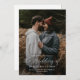 Guión moderno Código QR simple Invitación a la boda fotográfica. La parte posterior tiene una foto adicional y detalles con el código QR de RSVP. Haga clic en el botón de edición para personalizar este diseño para que se ajuste a sus necesidades.