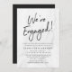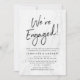 Elegantes invitaciones modernas de la fiesta de compromiso boda con un "We are Engaged" (Estamos involucrados) con un tipo de letra de guión moderno negro, fondo de mármol blanco y marcadores de posición para la información de su partido de compromiso personalizado. La parte posterior de las invitaciones de la parte de compromiso se puede cambiar a un color de su elección con la herramienta Personalizar.