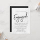 Elegantes invitaciones modernas de los bodas a participar con un tipo de letra de guión moderno negro, fondo de mármol blanco y marcadores de posición para la información de su partido de compromiso personalizado. La parte posterior de las invitaciones de la parte de compromiso se puede cambiar a un color de su elección con la herramienta Personalizar.