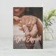 Esta moderna Invitación del Partido de Compromiso presenta el guión de oro rosa We're Engaged, una foto vertical de sangrado completo en el frente y detalles del fiesta en la parte posterior. Haga clic en editar para personalizar de este diseño.