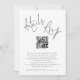 Guión moderno QR Code Photo All in One Boda. Añada su código QR a su sitio web boda en la parte posterior, lo que hace que sea una opción conveniente para sus invitados a RSVP y vea todos los detalles sin necesidad de tarjetas de detalles y RSVP separadas. El código QR se generará automáticamente cuando personalize la dirección URL de ejemplo a la propia. Una tipografía de conjunto informal en negro para el título principal El Boda de y los detalles y Rsvp al revés complementando el resto del texto que se puede personalizar fácilmente. Reemplace la foto de ejemplo con su propio favorito.
