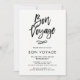 Esta moderna y elegante invitación de la fiesta de despedida Bon Voyage presenta un moderno texto negro sobre fondo blanco.