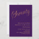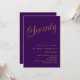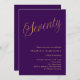 Una invitación moderna y de diseño para una fiesta de cumpleaños número 70. Un fondo morado de color y la palabra Setenty escrito con elegantes letras grandes de guiones en falso oro. Personalice y agregue un nombre y detalles del fiesta.