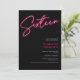 Invitación Guión rosa neón Guay retro foto negra Sweet 16