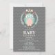 Una invitación de la fiesta de bienvenida al bebé que ofrece un ilustracion de un búho dentro de una guirnalda adornada con las flores, las hojas, y una bellota. Personalice el texto.