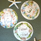 Las hojas de plátano azul y verde de las Bahamas son hermosas para recepciones de bodas con tema de playa tropical. La corona de flores boho es versátil para colores de tema de boda azul polvoriento, azul claro elegante y aqua. La corona frondosa con hojas de plátano verde salvia, eucalipto y helechos marrones es perfecta para invitaciones de bodas tropicales de verano. Transfiera fácilmente la corona de flores bohemias a una variedad de otros números de mesa o tarjetas de nombre para el letrero de su mesa de recepción de cena.
