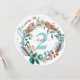 La corona de invierno con agujas de pino verdes, piñas marrones y eucalipto verde suave es hermosa en los letreros de números de mesa. El arte de agujas de pino perenne es versátil para una variedad de paletas de colores de boda en tonos óxido, cobre, marrón y verde bosque. La señalización de plantas de boda de invierno se personaliza fácilmente para una variedad de papelería de boda de invierno rústica.