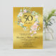 Con una delicada guirnalda floral de rosas pintadas a la acuarela sobre un fondo de lámina de oro, esta elegante invitación botánica para el 50 aniversario de bodas se puede personalizar con la información de su aniversario especial. El reverso presenta una guirnalda floral a juego que enmarca las fechas del aniversario en texto elegante sobre un fondo de lámina dorada. Diseñado por Thisisnotme©