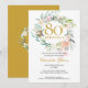 Con una delicada guirnalda floral de acuarela, esta elegante invitación botánica para un 80 cumpleaños se puede personalizar con la información de su día especial. El reverso presenta una guirnalda floral a juego que enmarca sus iniciales monograma en texto dorado elegante sobre un fondo dorado. Diseñado por Thisisnotme©