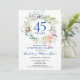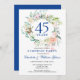 Con una delicada guirnalda floral de acuarela, esta elegante invitación de aniversario de bodas de 45 o 65 años con temática botánica puede ser personalizada con la información de su aniversario de bodas de zafiro. El reverso presenta una guirnalda floral a juego que enmarca las fechas del aniversario en texto blanco elegante sobre un fondo azul zafiro. Diseñado por Thisisnotme©