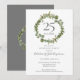 Con una elegante guirnalda de vegetación floral silvestre, esta invitación chic botánica para la fiesta del 25 aniversario de bodas puede ser personalizada con la información de su aniversario de plata. El reverso presenta una guirnalda de vegetación a juego que enmarca las fechas del aniversario en elegante texto blanco sobre fondo plateado. Diseñado por Thisisnotme©