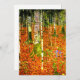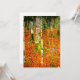 Tarjeta con la pintura de Gustav Klimt Granja con Abedules (1903). Un paisaje otoñal de hojas naranjas en un bosque de abedules con hermosas flores azules. Un regalo maravilloso para los fans del Art Nouveau y el arte austriaco.