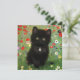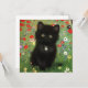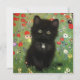 Tarjeta con un gatito de Gustav Klimt! Este gatito negro lleva un collar de plata y se sienta en un campo de flores rojas, azules, blancas y amarillas. ¡Un regalo maravilloso para los amantes del gato y del arte austriaco!