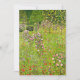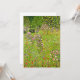 Tarjeta con la pintura al óleo de Gustav Klimt, Orchard con Rosas (1911). También conocido como Obstgarten mit Rosen, un huerto vibrante y verde es bellamente retratado. Las rosas rosas rosas y otras flores moradas y rojas bordean el camino del huerto. Un regalo maravilloso para los amantes del arte Art Nouveau y austriaco.