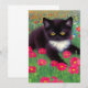 Tarjeta con un gato Gustav Klimt tuxedo! Este bonito gatito blanco y negro se encuentra en un campo de flores rojas, azules, blancas y naranjas. ¡Un regalo increíble para los amantes del gato y del arte austriaco!