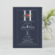 Invitación H Monograma Último Boda floral azul moderno inicia
